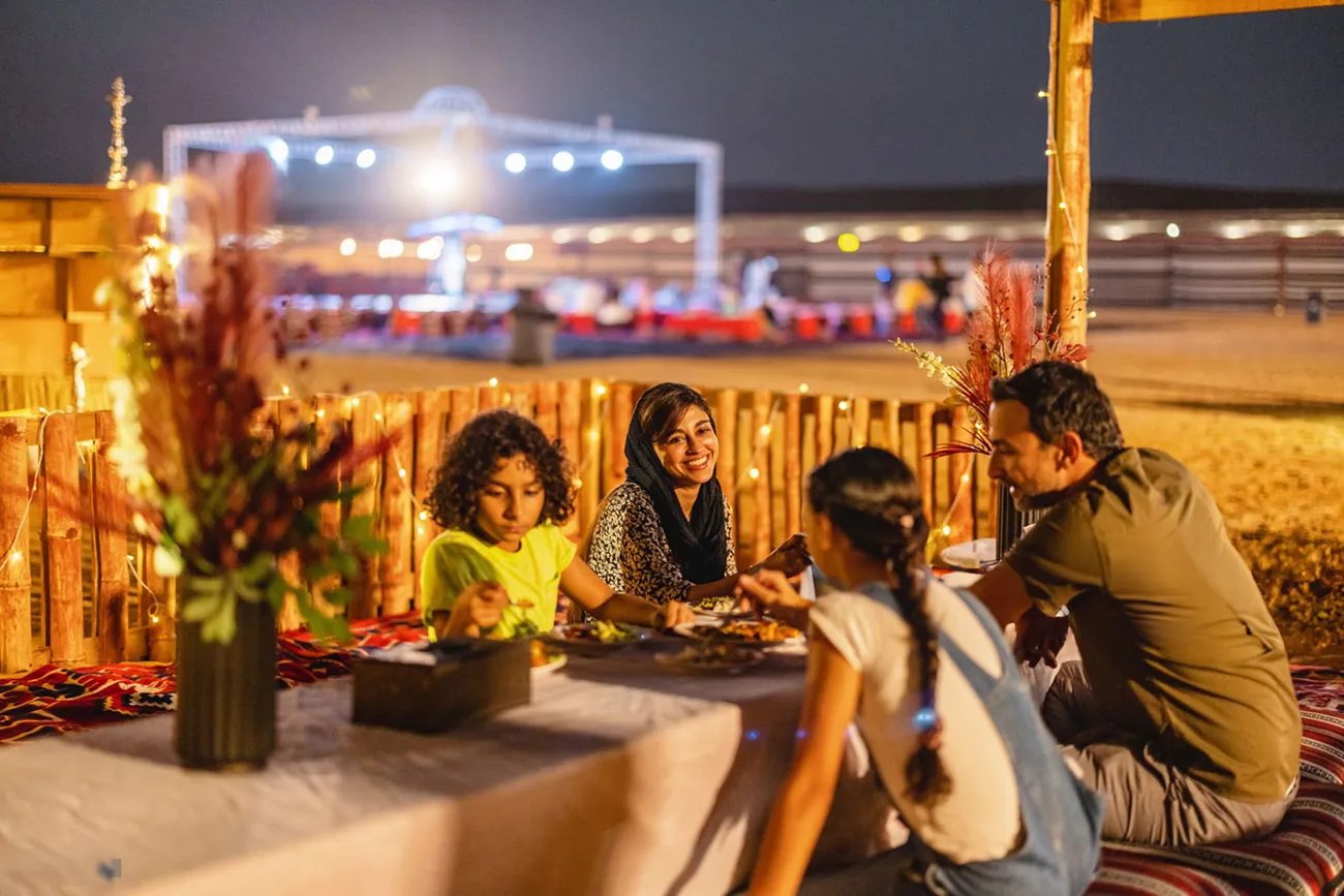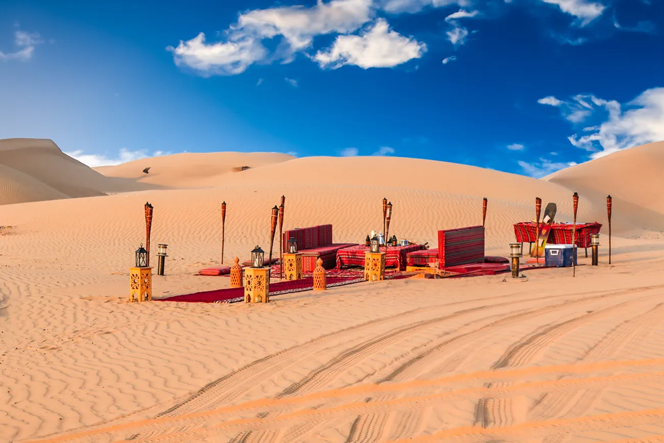 optional quad bike rides, camel experiences, sandboarding and a traditional desert camp