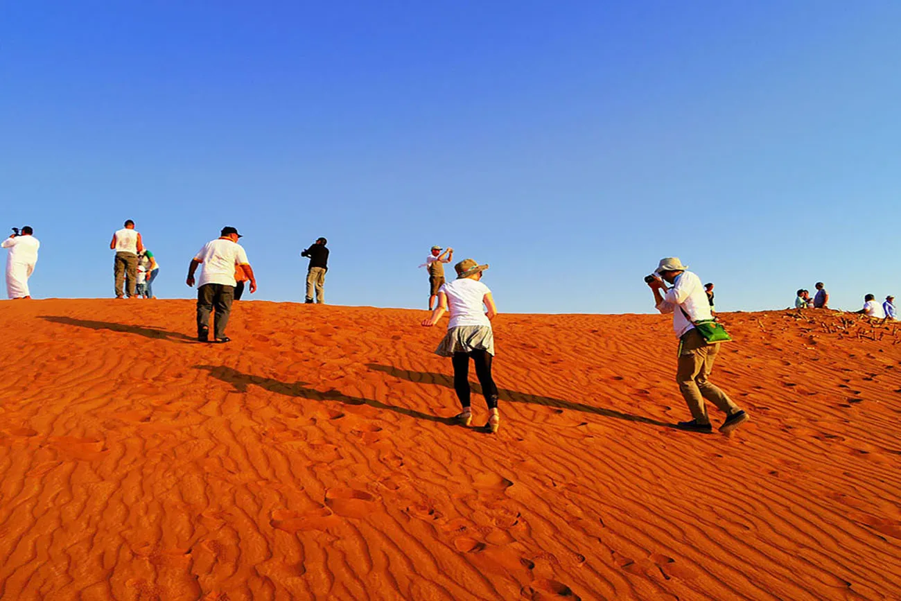 Ride into the famous Lahbab Red Dunes (“Big Red”) with 30–40 minutes of dune bashing,